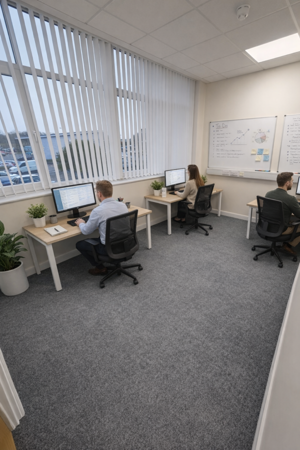 Office for 2-3-people, located on the first floor with lift access. This fully serviced, all-inclusive space includes access to meeting rooms, kitchen facilities, mail handling, and on-site security - all on flexible terms.