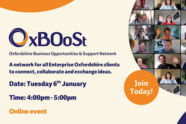 Enterprise Oxfordshire Business supports thousands of business owners each year, and OxBOoSt provides an easy way for them to network. The session takes place on Zoom and is open to all Oxfordshire‑based businesses.